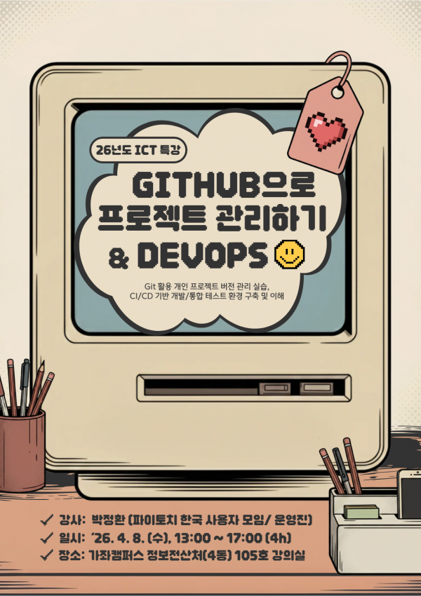 - 2026학년도 1학기 융복합 ICT 역량강화 특강 신청 안내.hwp (1.0M) 10회 다운로드 | DATE : 2026-03-31 15:52:11