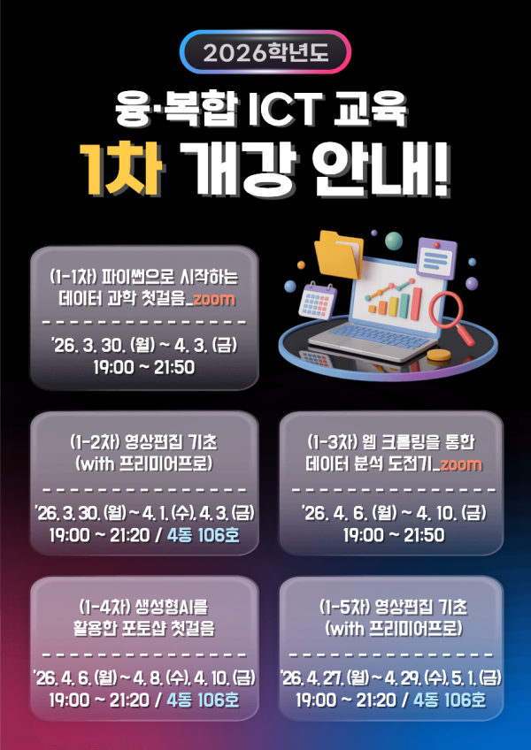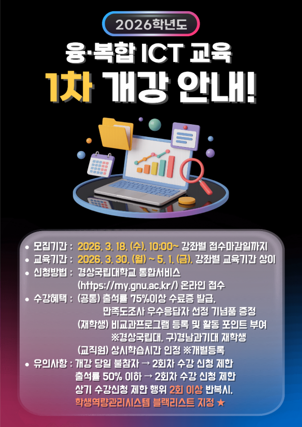대학생활 [국립대학육성사업] 2026학년도 1학기(1차) 융·복합 ICT 역량강화 교육 개강 안내